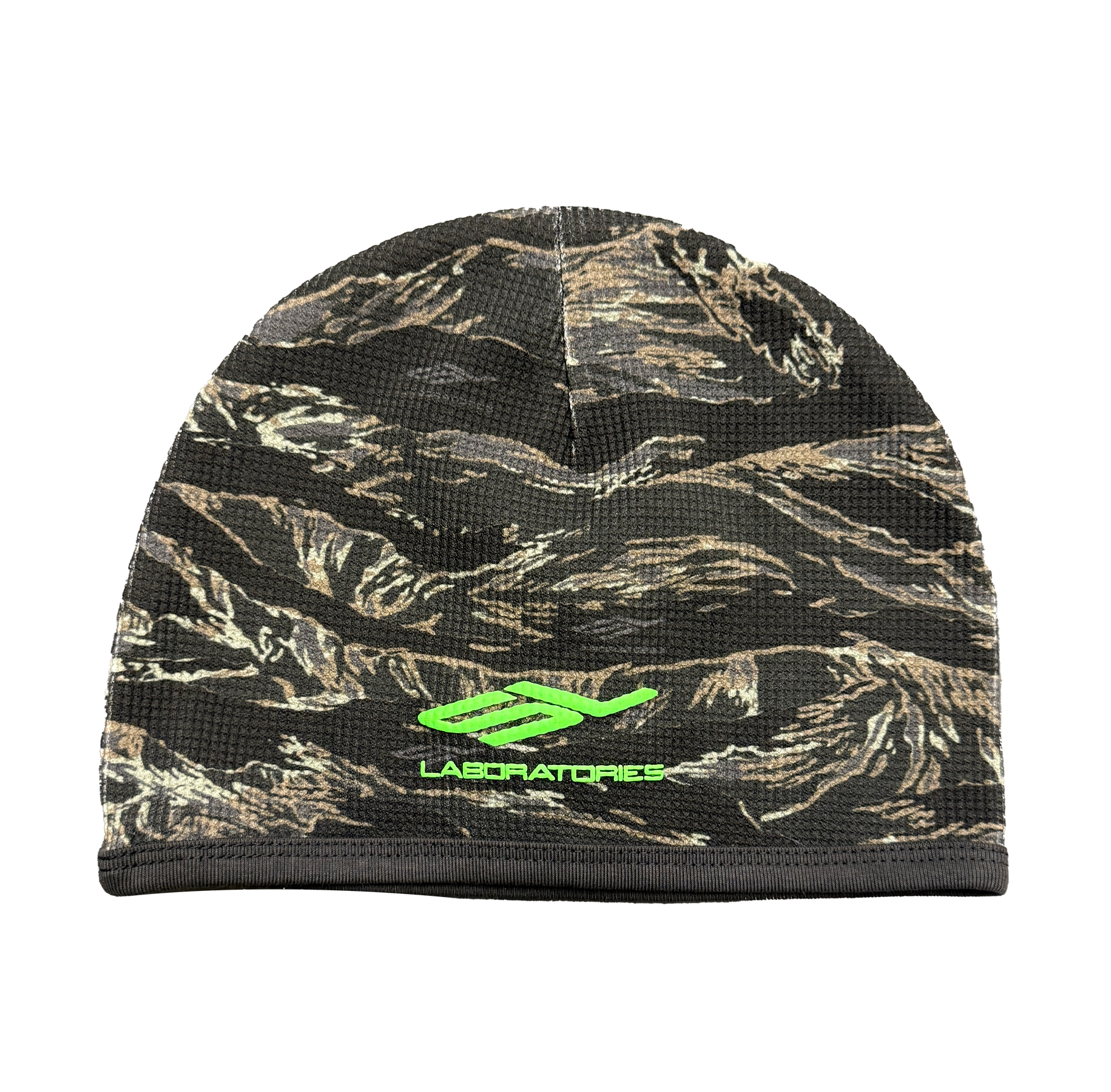 Scientist Lab beanie with SL laboratories puff print logo and +LABORATORIES+ embroidered logo on the back.